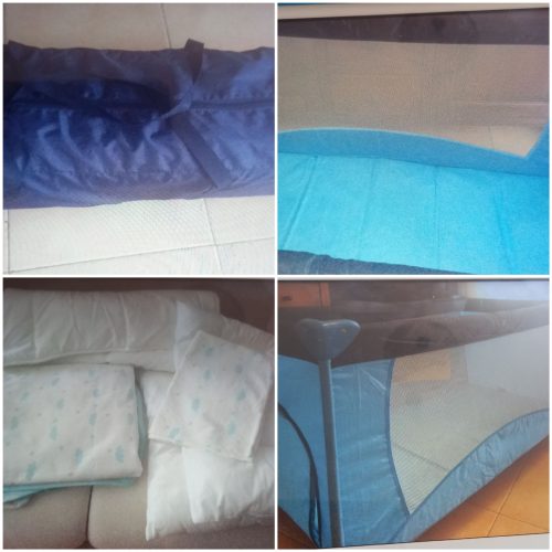 – Large travel cot, end zipped opening for older children. (124cms length x 65cms) Has wheels at one end with brakes. Also included: mattress, baby duvet, 2 baby pillows, matching covers and fitted sheet. Folds down for easy storage to 74x22x22cms. Excellent condition only used for occasionally for visiting grandchild. 65€. Pat, Nerja