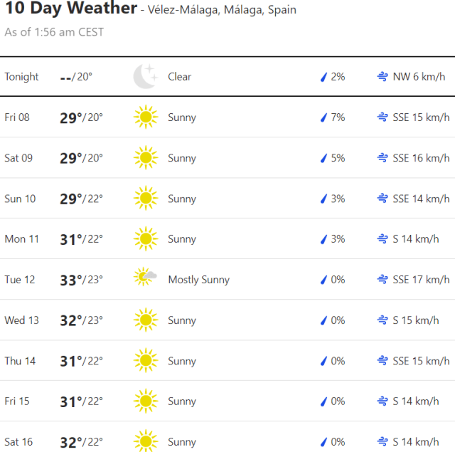 Local Weather: https://www.accuweather.com/en/es/torre-del-mar/306652/weather-forecast/306652