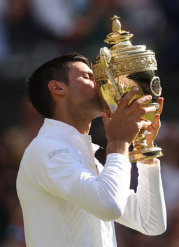 conditions to win 4-6 6-3 6-4 7-6(3) for his fourth consecutive trophy at the grasscourt major to close in on Rafa Nadal’s record 22 Grand Slam titles. By lifting the Challenge Cup once again, Djokovic drew level with his childhood idol Pete Sampras in the all-time winners list and is now just one shy of Swiss Roger Federer’s record eight Wimbledon titles. Photo: REUTERS/Matthew Childs. Full article: