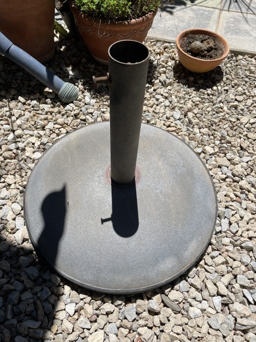 – Concrete parasol stand. 50 cm diameter. Heavy. 20 euro.