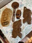 – Masks x 5, wooden, various designs, see photo. Largest approximately 46 cm x 25 cm. Smallest approximately 24 cm x 13 cm. Only 50 euro the lot.