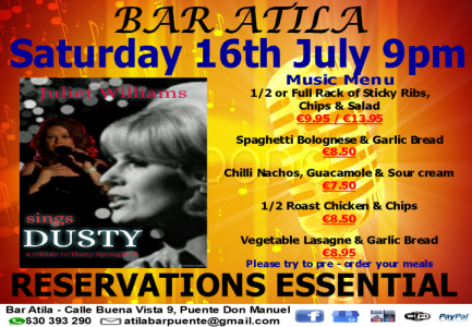 Juliet Williams sings Dusty- Bar Atila: Sat.16th July at 9pm