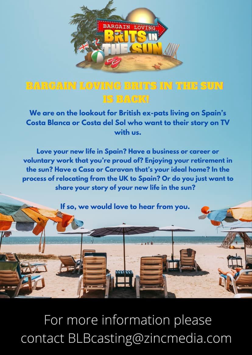 Want To Be On UK TV?: Bargain Loving Brits In The Sun is back and casting again in the Costa Del Sol! We would love to hear from any British expats who are chasing their dream in the sun. Please do apply. Thank you, Lucy, Casting AP