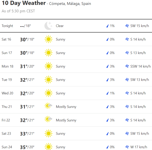 Local Weather: https://www.accuweather.com/en/es/torre-del-mar/306652/weather-forecast/306652