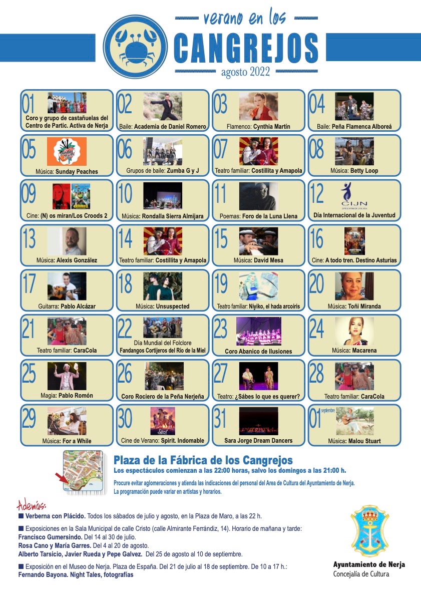Verano en los Cangrejos- Nerja: August Schedule of events. FB