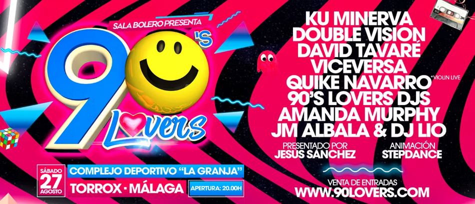 Featuring: Ku Minerva, Double Vision, David Tavaré, Viceversa, the live violin show by Quike Navarro, 90’s Lovers DJs, Amanda Murphy, JM Albala and DJ Lio, who will be presented by Jesús Sánchez, announcer of Los40, and Estep Dance group with their choreographies.