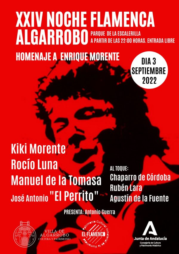 Free Entrance. Singing: – Kiki Morente – Rocío Luna – Manuel De La Tomasa – José Antonio Romero “El Perrito”. Flamenco Guitar Playing: – Chaparro De Córdoba – Rubén Lara – Agustín De La Fuente FB