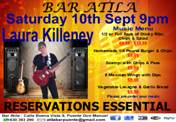 Live Music with Laura Killeney: Bar Atila. Sat. 10th Sept. at 9pm