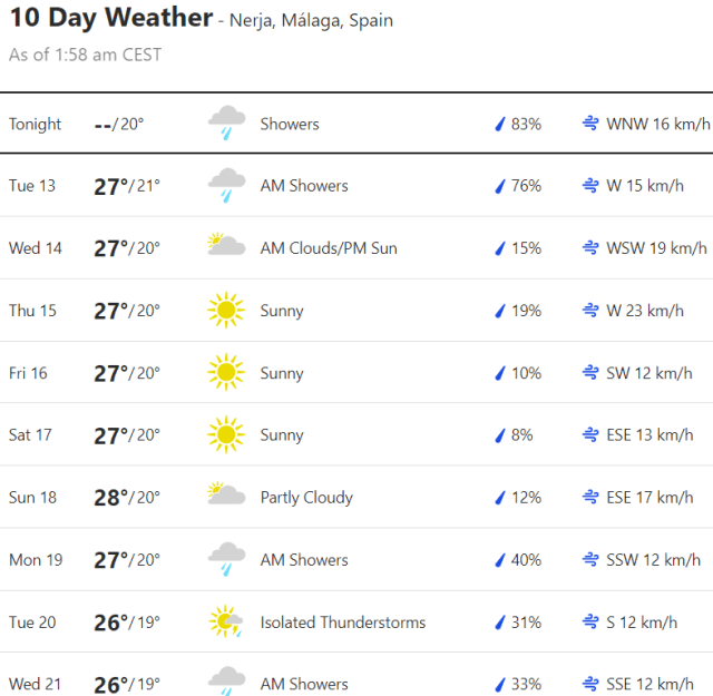 Local Weather: https://www.accuweather.com/en/es/torre-del-mar/306652/weather-forecast/306652