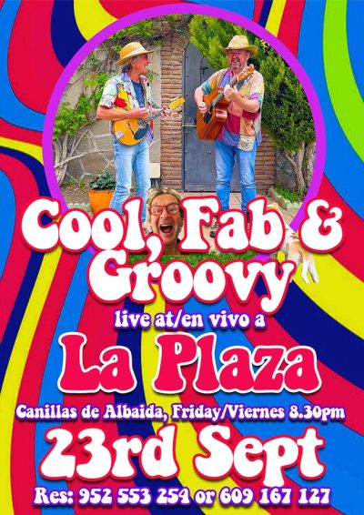 Concert: Hi folks, Cool, Fab & Groovy plus special guest singer will be performing live at Posada La Plaza, La Plaza, Canillas de Albaida this coming Friday 23rd September from 8.30pm.
