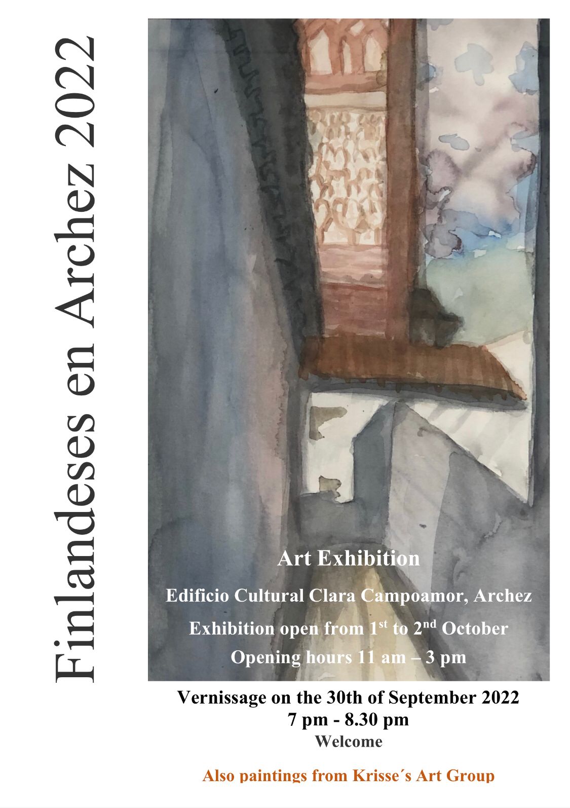 Exhibition in Archez: Exhibition in Edificio Culturar in Archez. Watercolor. The opening is on the Friday 30.9 at 7 pm. Refreshments. Welcome. There will also be paintings from Krisse’s art group.