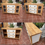 – Preloved stunning sideboard. Natural & yute. New handles. Waxed with mesh doors. Measurements 140 x 50 x 85cms. Price 295€