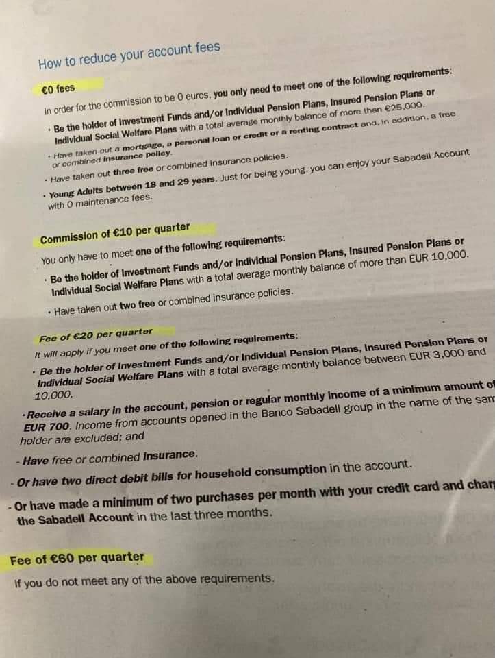 Photo of new fees letter: Geoffrey S. Full article with new fee schedule: https://euroweeklynews.com/2022/10/04/sabadell-allegedly-up-banking-prices/