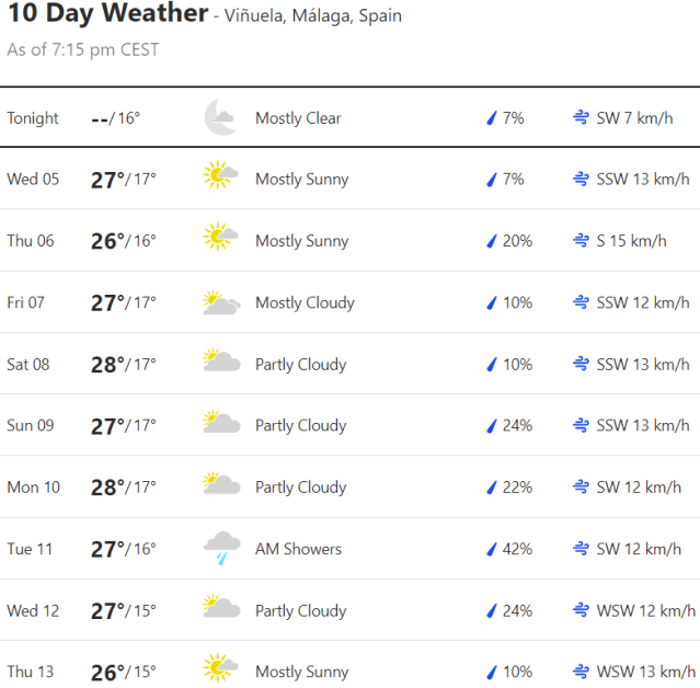 Local Weather: https://www.accuweather.com/en/es/torre-del-mar/306652/weather-forecast/306652