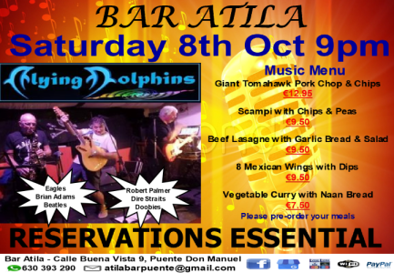Bar Atila: Flying Dolphins live, Saturday 8th October at 9pm