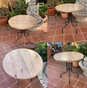 – Table. Beautiful solid wooden top table with black base