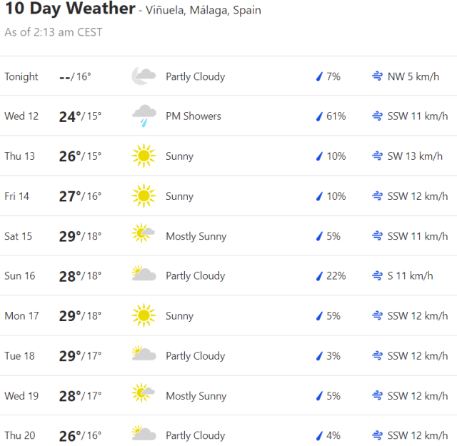Local Weather: https://www.accuweather.com/en/es/torre-del-mar/306652/weather-forecast/306652