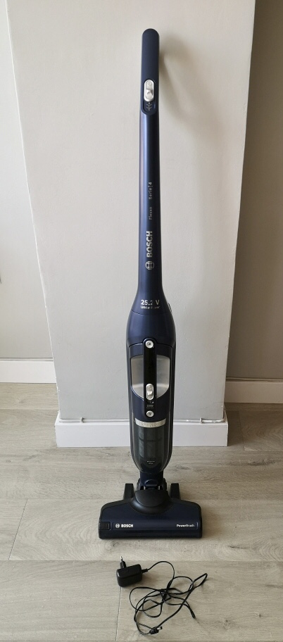 For Sale: Bosch Cordless, lightweight, vacuum cleaner Flexxo Serie 4, 2 in 1 (with built in stick for hand held vacuum cleaner and brush accessories), for carpets and hard floors. 50 mins runtime, perfect condition, used a couple of times, no longer needed.