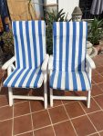 – 2 reclining plastic chairs with cushions (not identical) 30€ for the 2