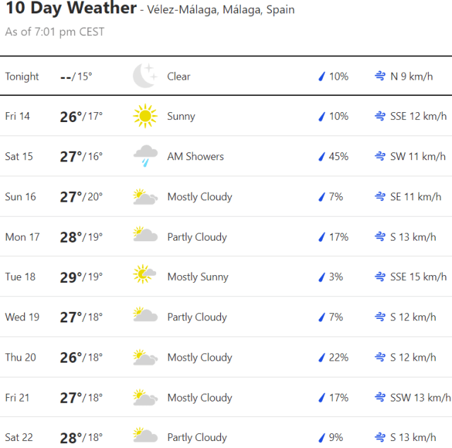 Local Weather: https://www.accuweather.com/en/es/torre-del-mar/306652/weather-forecast/306652