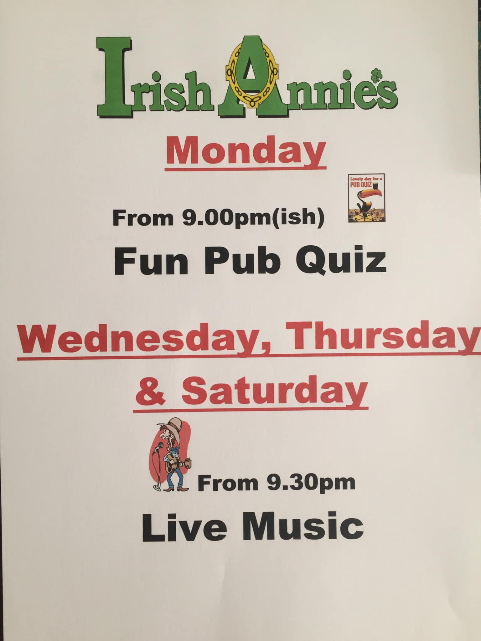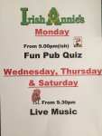 – Wed, Thur & Sat – Live Music from 9:30pm. FB