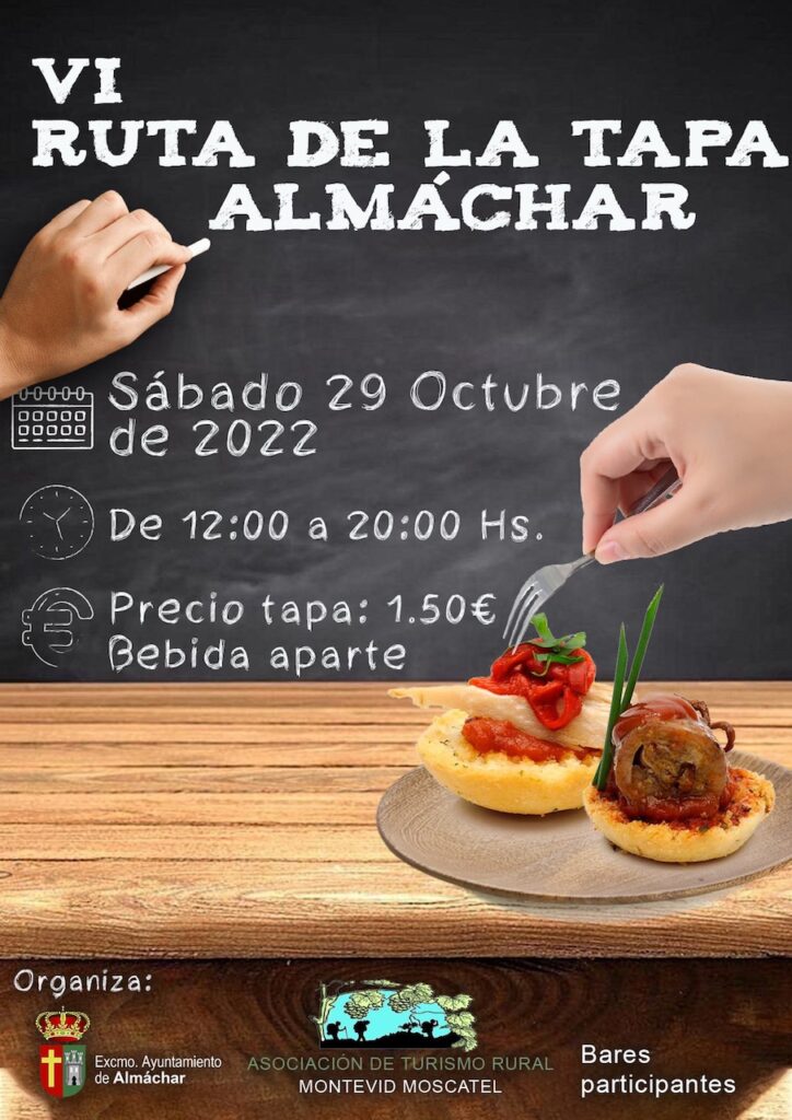 The VI Ruta de la Tapa de Almáchar: Saturday 29Oct with six participating bars, and 12 different tapas. Noon-8pm. Tapas €1.50