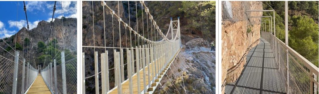 In these two years, ‘El Saltillo’ has become one of the highlights of the Gran Senda de Málaga, in its seventh stage. A trail that runs along new infrastructures and footbridges that take hikers to one of the three largest suspension bridges in Spain in natural spaces, 54 metres long and 70 metres above the Almanchares River, and which joins the municipalities of Canillas de Aceituno and Sedella.