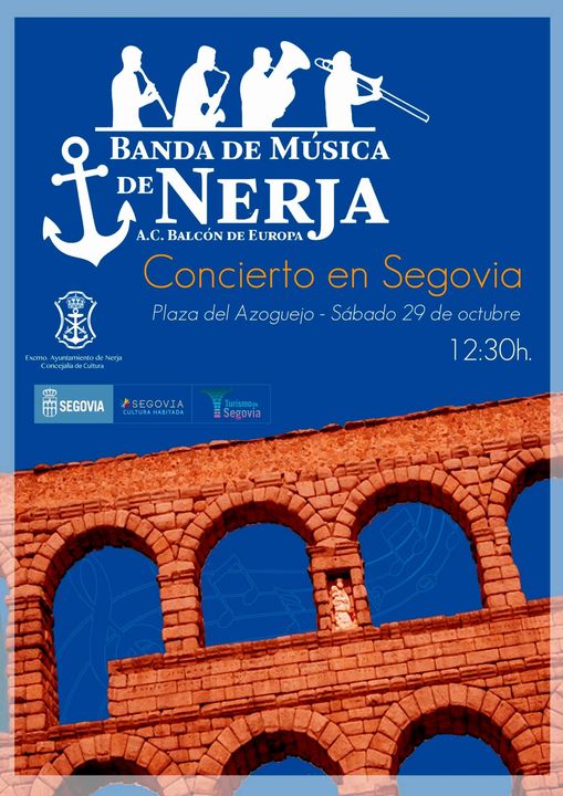 Concert: The Banda de Música of Nerja will give a concert in Segovia on 29th October, 12:30h, in one of the most important and emblematic points of the city, the Plaza del Azoguejo, at the foot of the famous Aqueduct. Full details, Spanish: https://www.nerja.es/la-banda-de-musica-de-nerja-ofrecera-un-concierto-en-segovia/