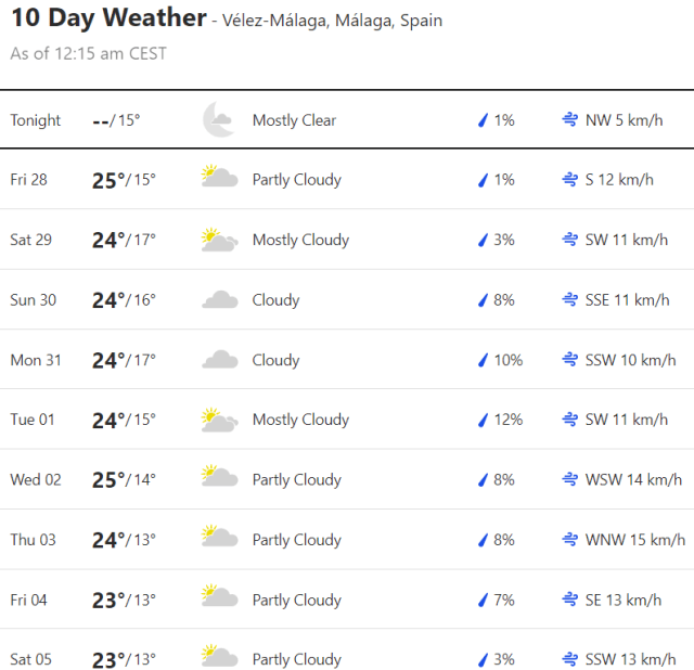 Local Weather: https://www.accuweather.com/en/es/torre-del-mar/306652/weather-forecast/306652