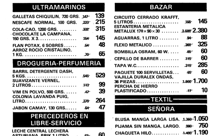 – As far as the shopping list is concerned, the difference in prices is truly abysmal. A kilo of beef used to cost 424 pesetas (2.55 euros); (2.55 euros; now about 13 in some supermarkets), a loaf of bread in the grocery store cost 17 pesetas (the equivalent of 10 cents now), two litres of La Masía brand olive oil cost 350 pesetas (2 euros), a box of María biscuits cost 112 pesetas (65 cents) and Mimosin fabric softener cost 99 pesetas (0.60 cents) for 2 litres on the supermarket shelves. Now, it costs almost 6 euros. Source, Spanish: https://sevilla.abc.es/espana/barra-pan-pesetas-entrada-cine-cambiado-coste-20221028233817-nt.html