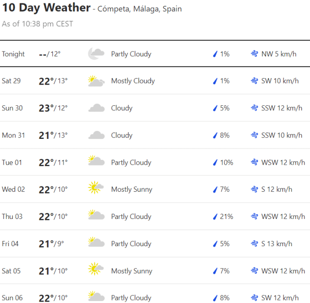Local Weather: https://www.accuweather.com/en/es/torre-del-mar/306652/weather-forecast/306652