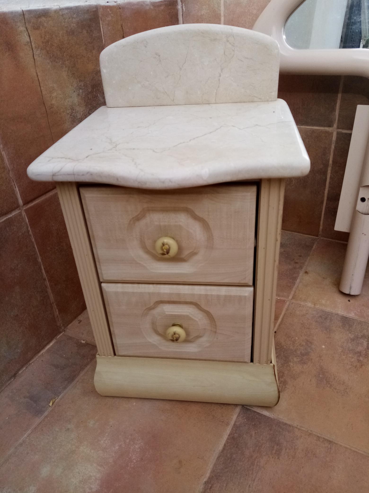 – Two small bedside tables with marble tops. 40 euros the pair. Canillas de Aceituno. Tel Heather. 628306371