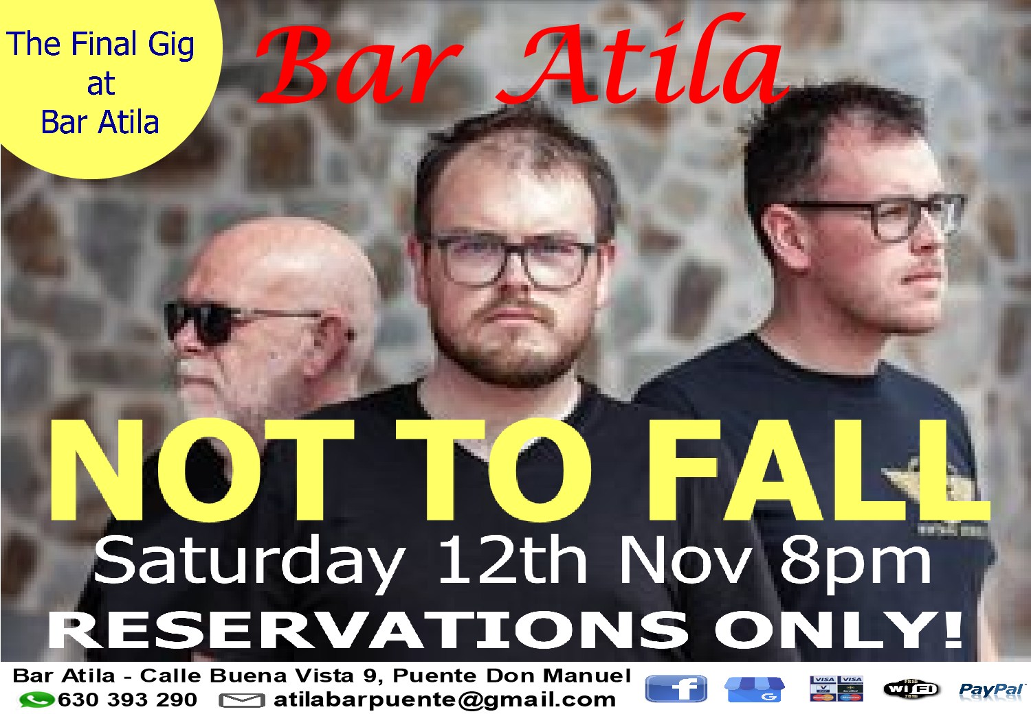 – We have decided to upgrade our last gig, Saturday 12th Nov, from one Townsend to three of them! NOT TO FALL will now perform starting at 8pm, reservations only! tlf 630393290