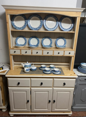 – Stunning preloved Welsh dresser look fabulous in a country cortijo Natural solid wood & yute colour. Measurements 120 x 43 x 186cms Price 325€