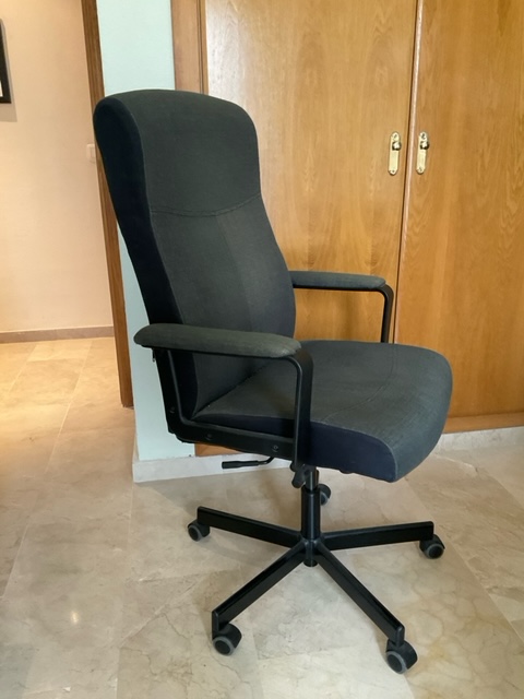 For Sale: High back office chair in good condition. Pneumatic lift mechanism and 5 Castor base. €25. Adrian, Caleta de Velez. Buyer collects. Contact on 660576506 phone / WhatsApp or