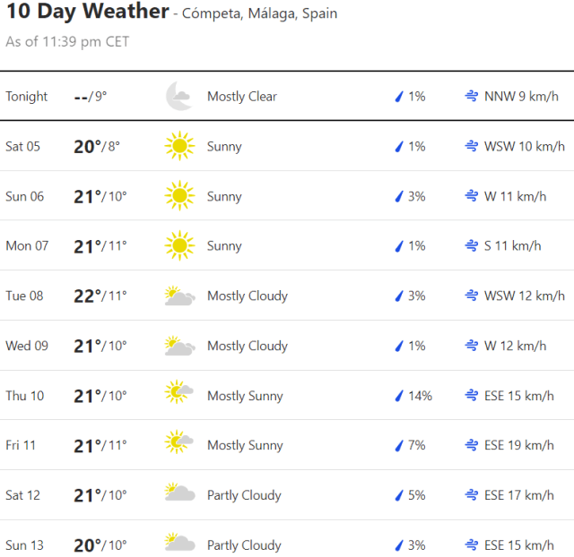Local Weather: https://www.accuweather.com/en/es/torre-del-mar/306652/weather-forecast/306652