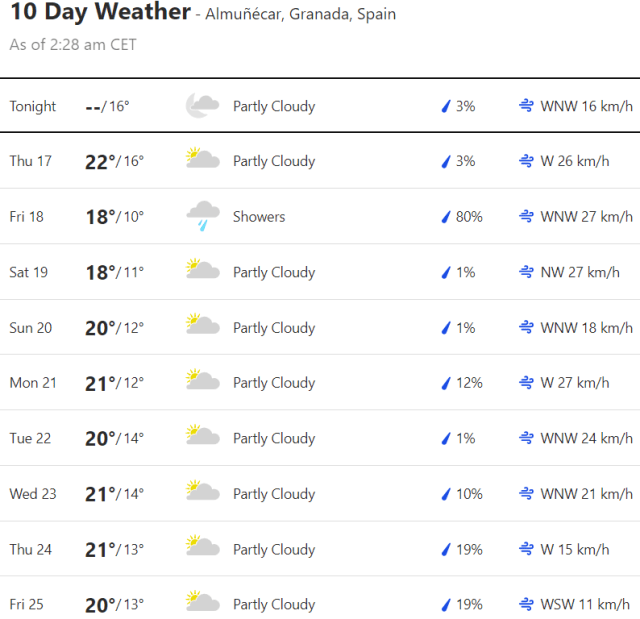 Local Weather: https://www.accuweather.com/en/es/torre-del-mar/306652/weather-forecast/306652