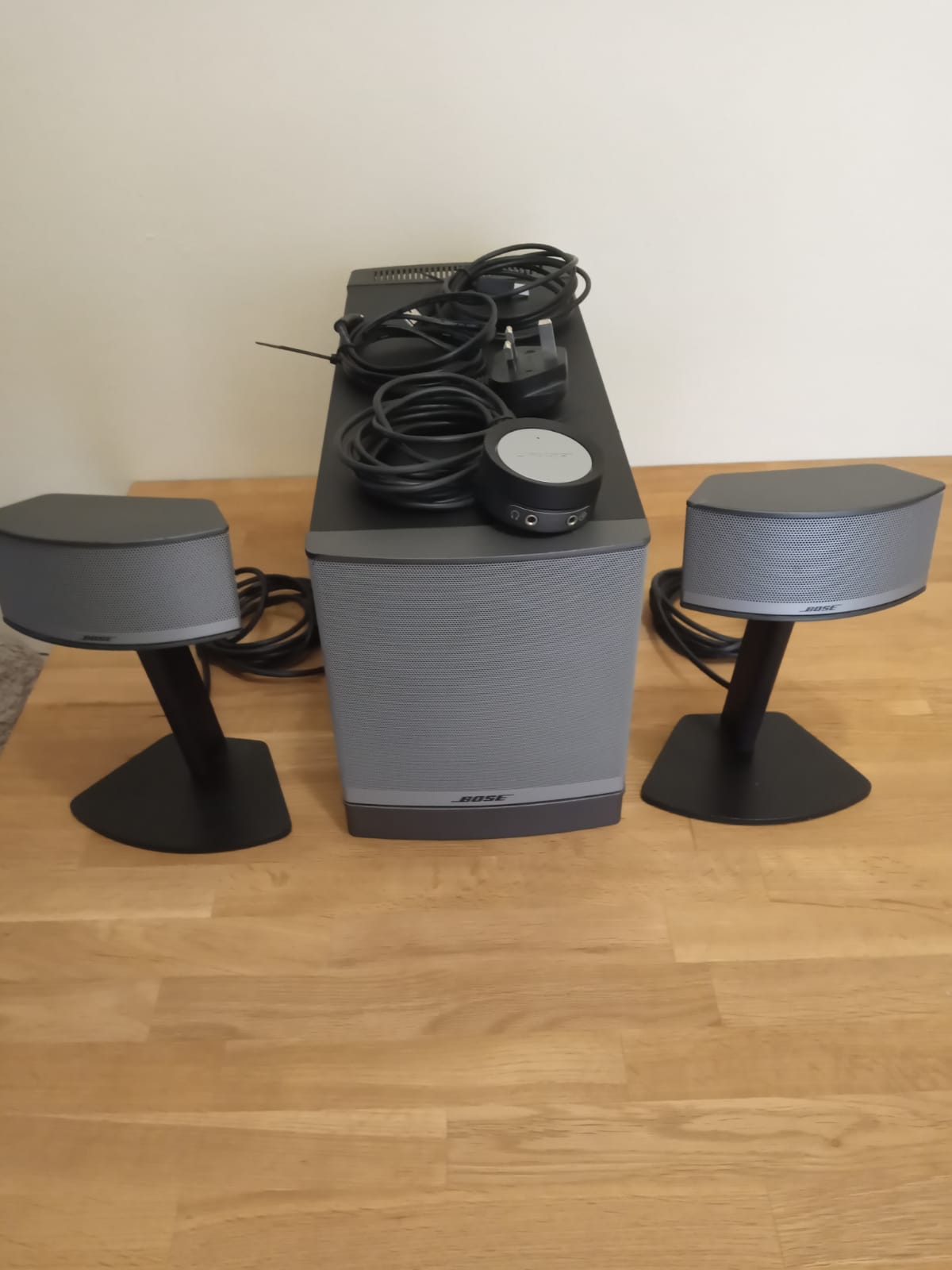 For Sale: BOSE multi media speaker system. Easy set up and excellent sound with bass speaker and two satelite speakers. Very good condition and in full working order. Selling for €70.