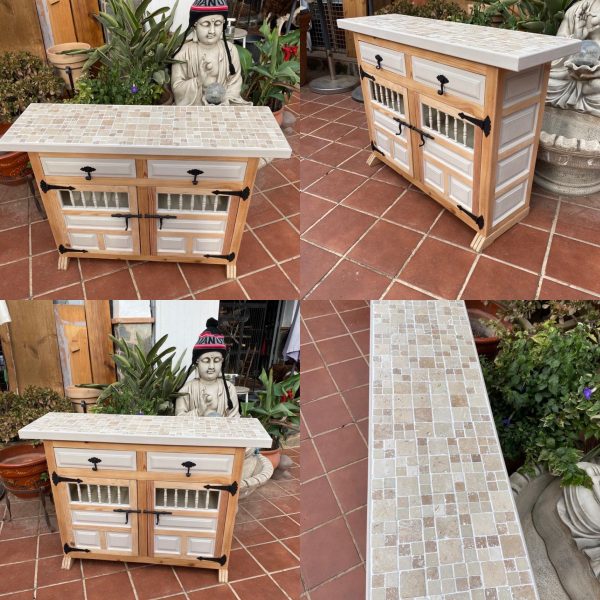 – Fabulous preloved sideboard natural & yute with individual granite tiles on top. Measurements 110 x 34 x 80cms. Price 165€