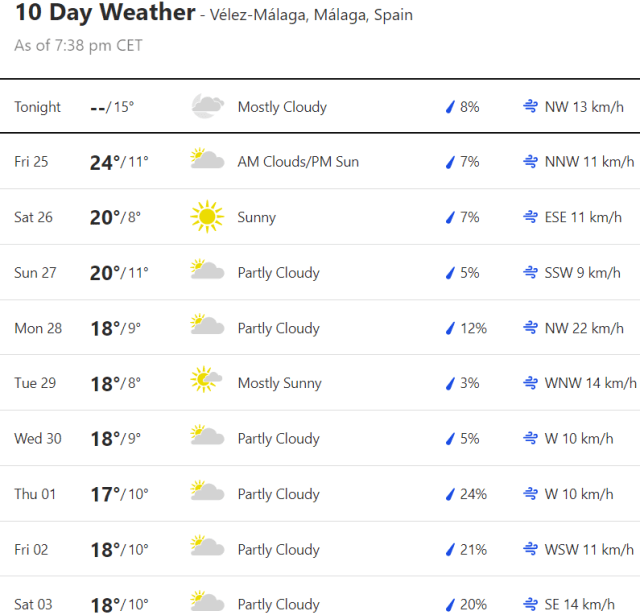 Local Weather: https://www.accuweather.com/en/es/torre-del-mar/306652/weather-forecast/306652