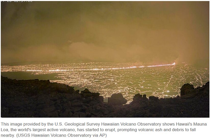 – Flows of lava remained “contained” within the summit caldera of Mauna Loa, but the eruption could pose a threat to nearby residents should conditions change, the United States Geological Survey (USGS) reported at 11:45 pm local time Sunday (9:45 GMT Monday) some 15 minutes after the eruption inside Hawaii Volcanoes National Park. Full article: https://www.france24.com/en/live-news/20221128-hawaii-volcano-world-s-largest-erupts-for-first-time-in-decades