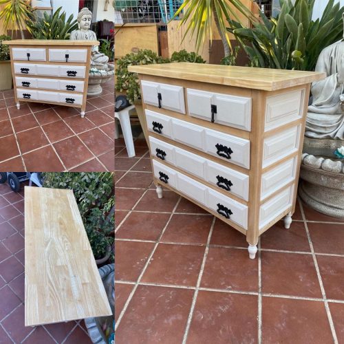 – Castillan chest of drawers natural solid wood with cereal tostada paint. Measurements 83 x 38 x 81cms. Price 110€