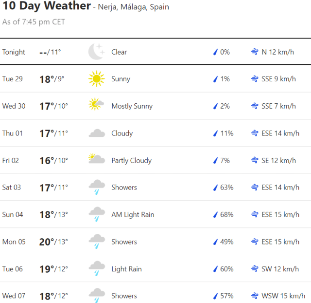 Local Weather: https://www.accuweather.com/en/es/torre-del-mar/306652/weather-forecast/306652