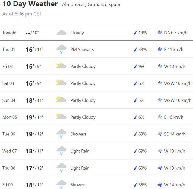 Local Weather: https://www.accuweather.com/en/es/torre-del-mar/306652/weather-forecast/306652