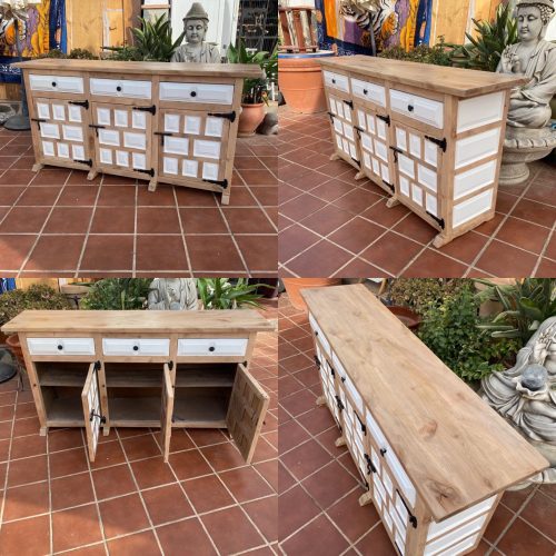 – Fabulous preloved castillan sideboard. Beautiful solid wood top with fabulous detail in the wood white chalk paint Waxed Measurements 159 x 39 x 79cms. Price 250€