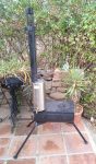 For Sale: Portable wood stove for patio/camping. Plus water boiler and pans. Folds into carry bag 45cms x 22cms x 25cms.