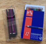 – Drawing Pencils. New tin (cellophane sealed) Caran D’ache high quality water soluble colour pencils with soft leads and pouch of 6 black pencils. There is a B, Black 01, 2B, 4B, Black Magic and Medium Charcoal. 2 of these are unused, others little used. 15 Euros.
