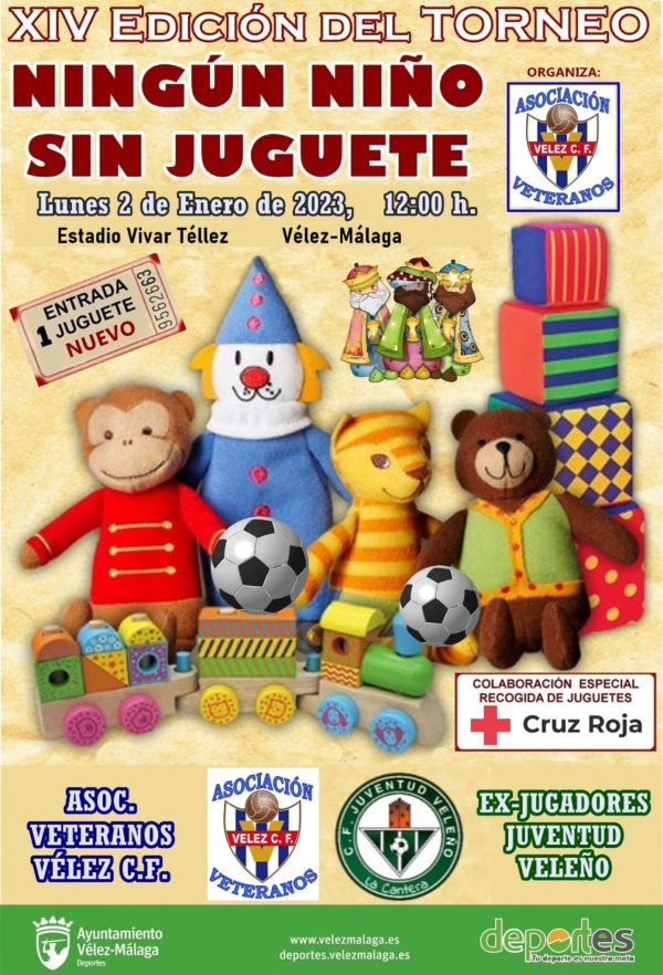 Vélez-Málaga presents the 14th edition of the ‘No Child Without a Toy’ Tournament: Monday January 2, from 12:00 pm at the Vivar Téllez Stadium.