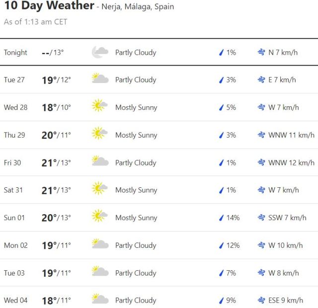 Local Weather: https://www.accuweather.com/en/es/torre-del-mar/306652/weather-forecast/306652