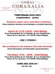 Local choir invites new singers: Coraxalia multi-national Choir welcomes new singers. We rehearse on Thursdays, 17:30 – 20:00 in the Casa Hermandad de la Cofradía de los Estudiantes, Plaza de los Sastres, 1, CP 29700 Vélez-Málaga, near San Juan Church and the Language School. Parking nearby at the San Francisco market (1 euro). For more information please contact 657951755 (English) or 689111352 (Spanish).